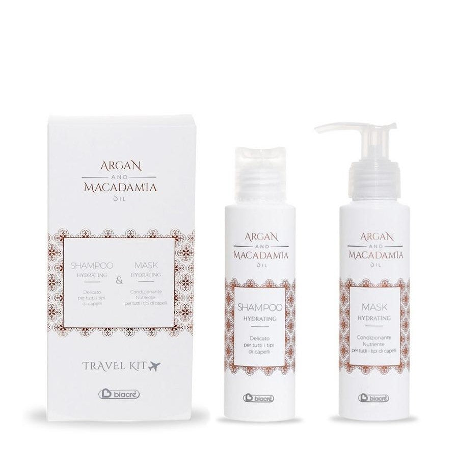 Confezione da viaggio contenente Shampoo 100 ml + Mask 100 ml con olio di Argan e di Macadamia, per qualsiasi tipo di capelli, in particolare secchi, trattati. Deterge delicatamente, lasciando i capelli idratati, morbidi, brillanti . ml