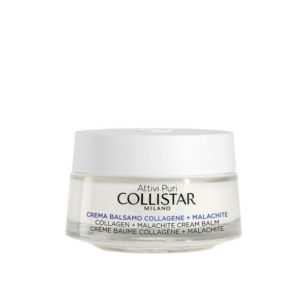Trattamento in crema-balsamo con Aminoacidi di Collagene Vegetale per garantire un'intensa azione anti-invecchiamento, rassodante e antirughe. Gli Aminoacidi di Collagene Vegetale selezionati da Collistar Clean Research®, ottenuti legando insieme fibre proteiche di mais, soia e grano, riproducono strutturalmente e mimano l'azione del collagene animale. Al Collagene Vegetale è associata la Malachite, estratto minerale ricco in rame, prezioso alleato per la protezione della pelle dall'invecchiamento cutaneo grazie alla sua azione antiossidante e anti-glicazione (processo degenerativo che porta all'irrigidimento delle fibre di collagene e quindi alla perdita della loro funzionalità).