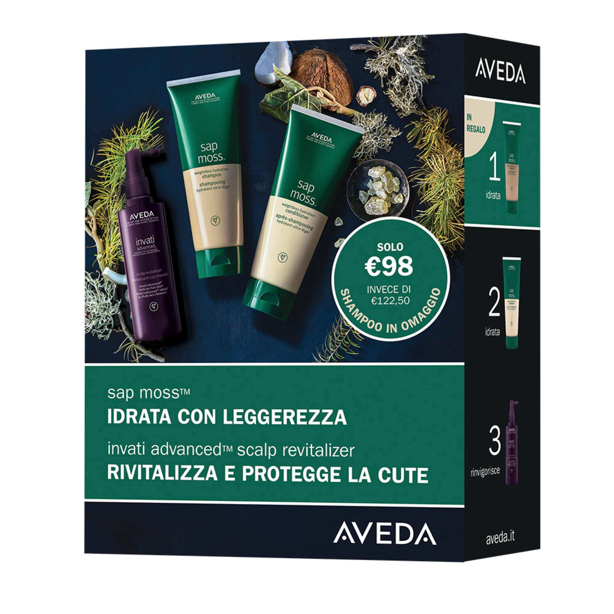 ue prodotti per idratare i capelli con leggerezza e un prodotto per rivitalizzare e proteggere la cute. Il trio da usare ogni giorno per capelli più idratati e folti grazie a linfa di larice, olio di cocco, muschio islandese, ginseng e curcuma.