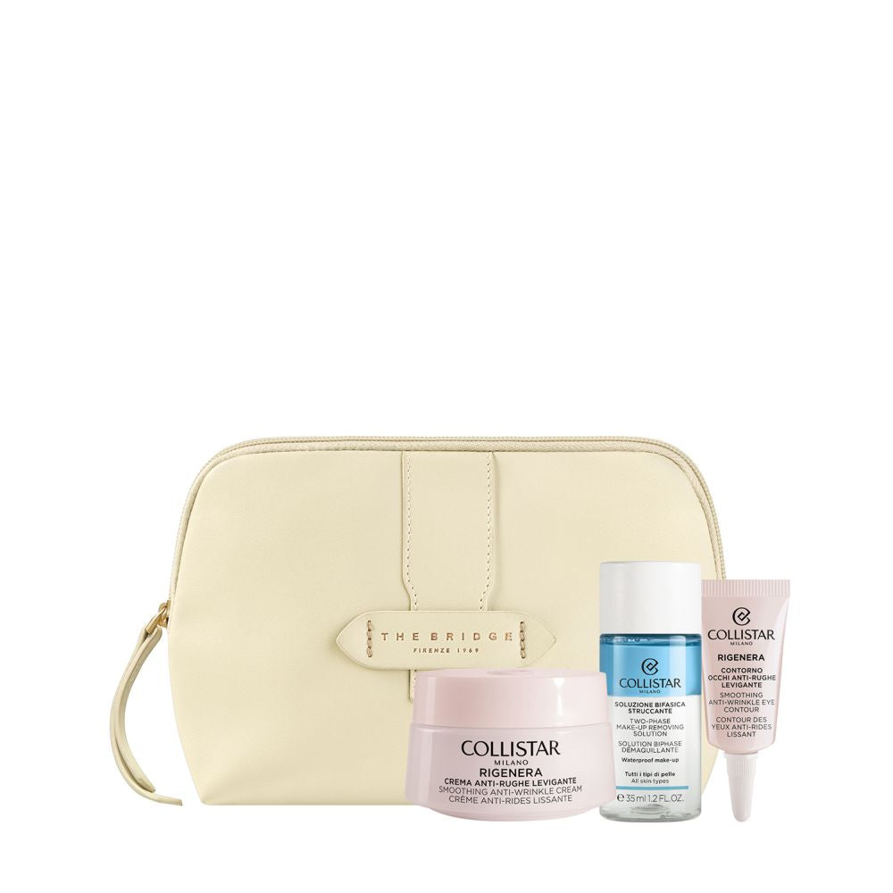 The Bridge, eccellenza della pelletteria italiana, firma le esclusive Beauty-Bag dei cofanetti regalo Collistar. Le trousse dal design elegante ed essenziale sono abbinate ai prodotti Collistar più amati: scegli la tua combinazione tra le proposte delle linee Trucco, Viso, Corpo e Uomo.