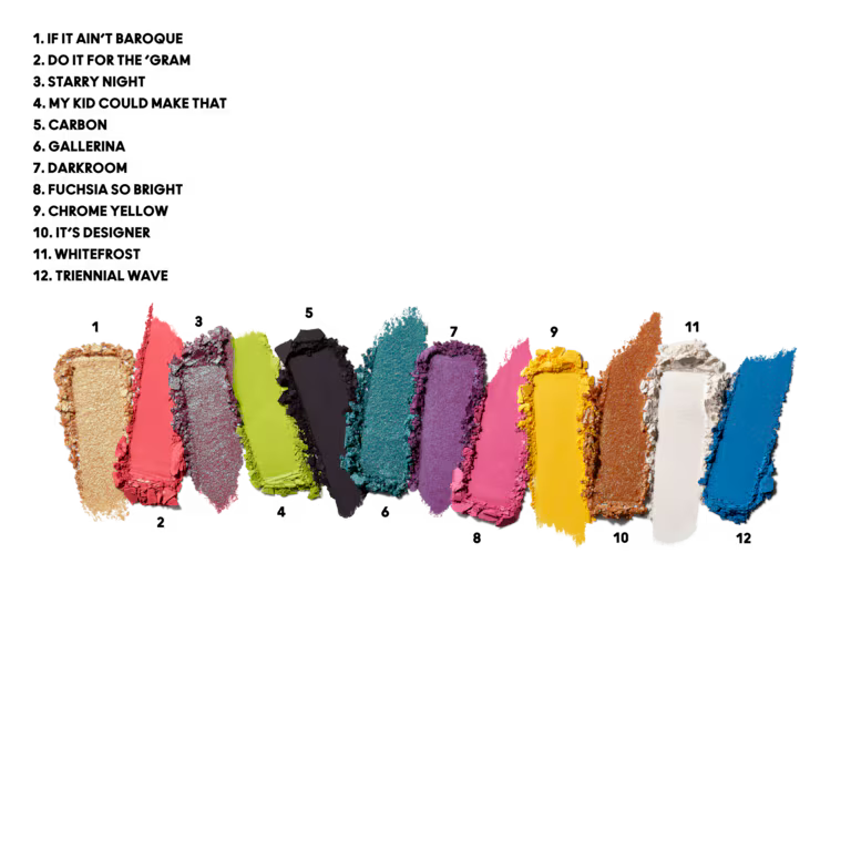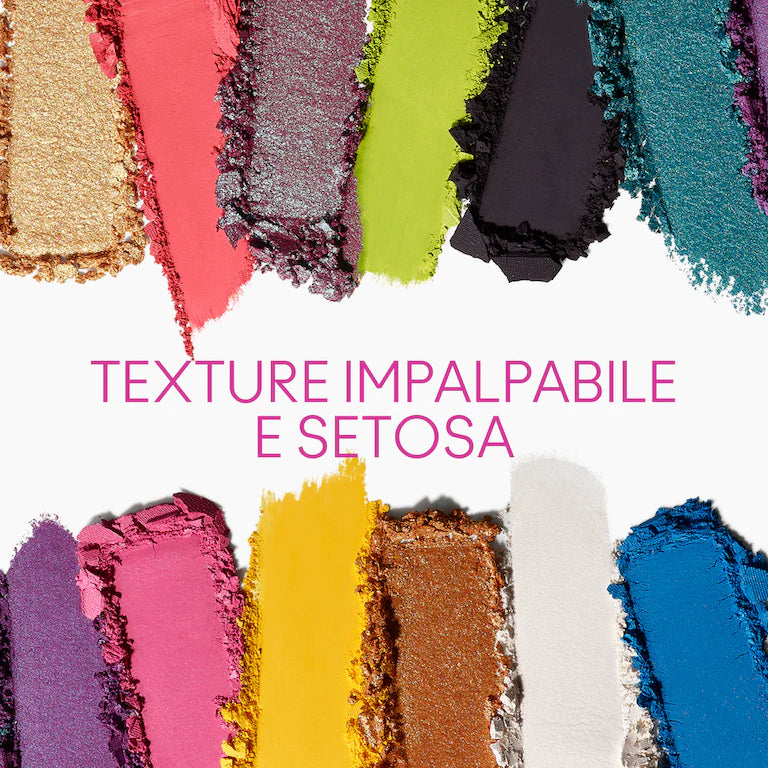 Una palette technicolor di 12ombretti di nuova concezione,con una resa di pigmenti puri in una sola passata, per creare un'infinità di look, dai più artistici ai più mistici.