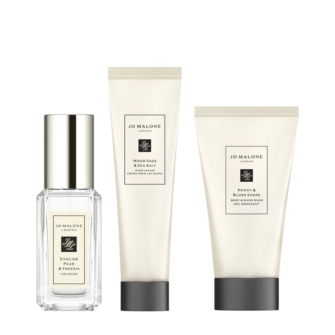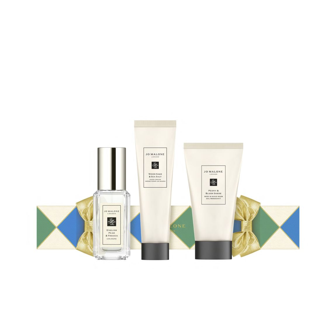 Vesta la tavola delle feste con questo cracker decorativo che racchiude profumi. Contiene tre fragranze in formato mini: una English Pear & Sweet Pea Cologne (9 ml), una Crema mani Wood Sage & Sea Salt (15 ml) e un Detergente mani e corpo Peony & Blush Suede (30 ml).