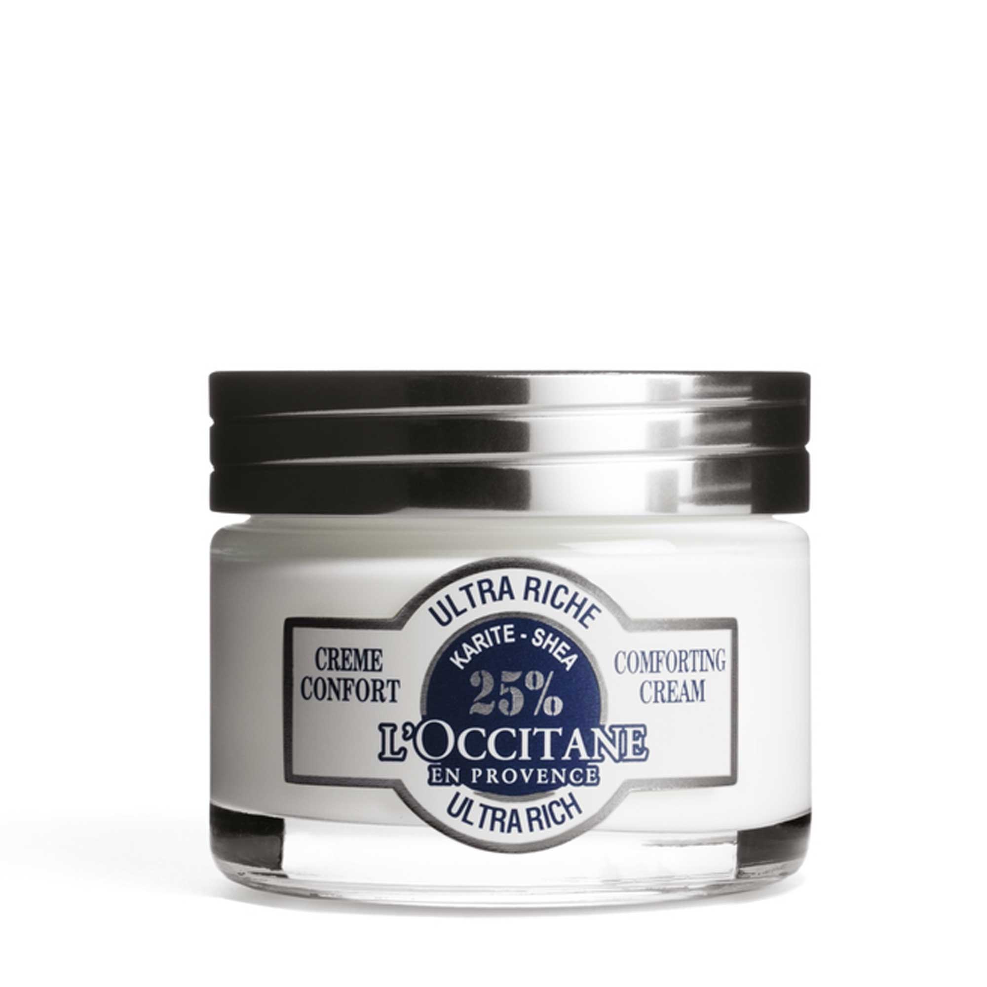 La Crema Confort Ultra Riche ha una texture ricca e fondente grazie al 25% di burro di Karité. Risponde ai bisogni essenziali di pelli secche, molto secche e sensibili. La pelle è idratata durevolmente (72h)**, e risulta morbida e liscia; la sensazione di stiramento dopo la sua applicazione è scomparsa. La pelle è confortevole per tutta la giornata, protetta dalle aggressioni esterne. Testata in situazioni climatiche estreme per garantire l'efficacia idratante. In Burkina Faso il burro di karité viene lavorato ancora artigianalmente, le donne detentrice di questa arte hanno delle mani bellissime e morbidissime! L’OCCITANE utilizza il burro di karité artigianale del Burkina Faso perchè particolarmente ricco di omega 6 e karitene, molecole dalle altissime proprietà nutrienti e rigeneranti.