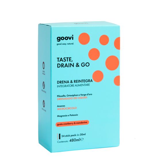 Integratore alimentare drenante in pratici stick pack monouso da portare sempre con te che, grazie alla sua formulazione a base di estratti vegetali tra cui Ananas, Pilosella, Ortosiphon e Verga d’oro favorisce il drenaggio dei liquidi e il microcircolo. Inoltre, grazie alla presenza di Magnesio e Potassio aiuta a reintegrare i sali minerali. Gusto cranberry & mandarino. Provalo anche ai gusti zenzero & lime e melograno & frutti di bosco.