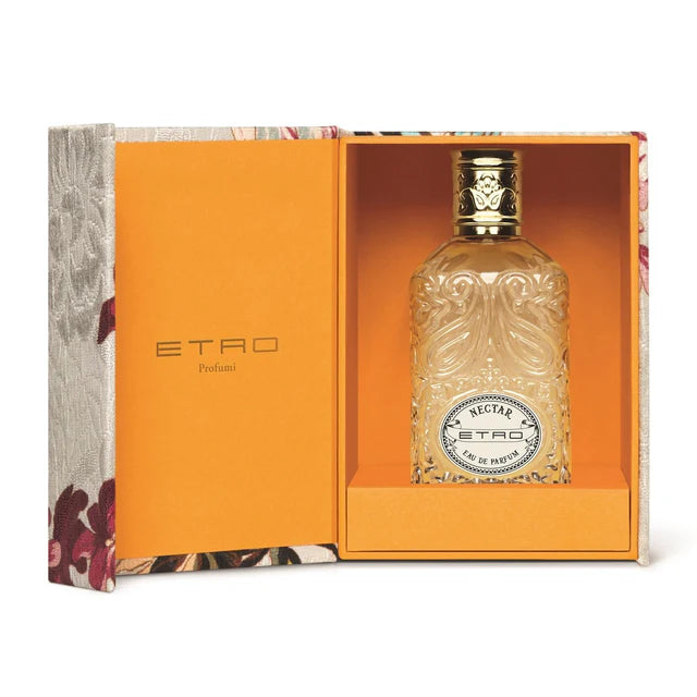 Il profumo si presenta in un flacone da 100ml decorato con l’iconico motivo Paisley in rilievo sulla trasparenza del vetro e sul tappo con finitura oro. La fragranza è custodita in un lussuoso cofanetto rivestito con i tessuti d’archivio ETRO.