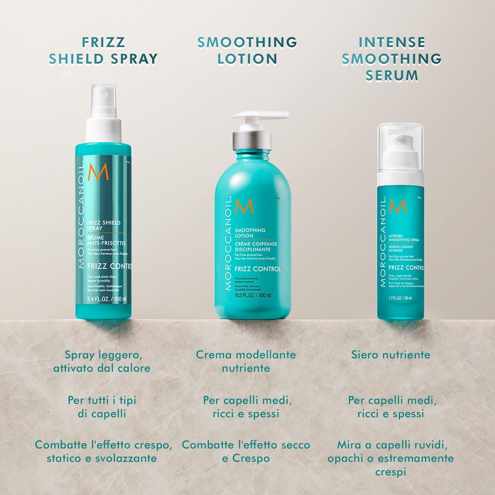 Una soluzione liscia per capelli tendenti all'estremo crespo e indisciplinati. Questo siero per l'asciugatura crea look levigati anche per i capelli più difficili. Sebbene concentrato e molto potente, non appiattirà i capelli né aumenterà il loro peso, ma piuttosto consentirà un movimento fluido con una finitura lucida.