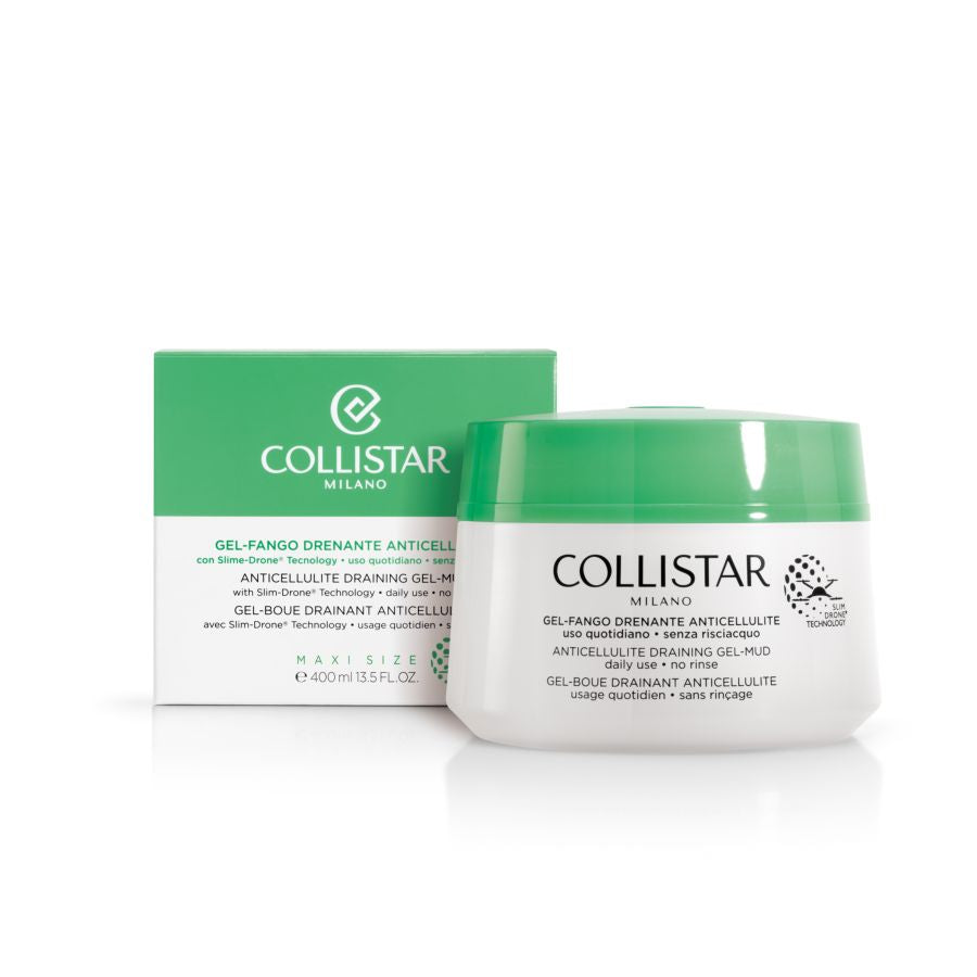 Un specialità di uso quotidiano che unisce i benefici di un fango anticellulite all` efficacia di Slim-Drone®, un avveniristico principio attivo che, proprio come un drone, va diritto al bersaglio colpendo al cuore la cellula adiposa. Il tutto veicolato in una inedita e piacevole texture gel-fango di immediato assorbimento e senza risciacquo. Azione anticellulite snellente Slim-Drone ® incapsula un potente principio attivo lipolitico, l`estratto di Coccoloba Uvifera, e lo rilascia direttamente all`interno della cellula adiposa. Ricco di polifenoli, questo estratto ha dimostrato di favorire la lipolisi, ossia la scissione dei grassi, con un`efficacia due volte superiore a quella della caffeina. Aiuta inoltre a ridurre sia la lipogenesi, sintesi dei lipidi, che l`adipogenesi, formazione di nuovi adipociti. Azione drenante e detox Il fango bianco , ricco di sali minerali e dotato di elevato potere assorbente, è in grado di captare e asportare l`eccesso di liquidi e le tossine presenti nei tessuti cutanei. L`escina, costituita da un mix di saponine e flavonoidi, stimola la microcircolazione capillare favorendo il drenaggio e la rimozione dei liquidi interstiziali e, nello stesso tempo, svolge un`azione antiossidante e decongestionante, particolarmente preziosa per le zone colpite dalla cellulite. L`effetto ‘guaina` della texture. L` efficacia del prodotto è potenziata dall` inedita texture gel-fango che avvolge il corpo in un` invisibile guaina rimodellante, rendendolo subito più levigato e compatto. Favorisce inoltre per osmosi la penetrazione dei principi attivi e li trattiene più a lungo nei tessuti cutanei prolungandone nel tempo l`azione.