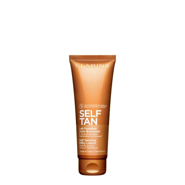 Il latte 2-in-1 perfetto per prepararsi all’estate. Dona alla pelle un’abbronzatura incredibilmente naturale, uniforme e duratura grazie al [SelfTanComplex], una combinazione di DHA di origine naturale ed eritrulosio. La sua formula arricchita con estratto di fico biologico idrata la pelle per 24 ore*. La pelle è sublimata, idratata a lungo, morbida e levigata per sfoggiare più a lungo la sua splendida luminosità dorata. La sua texture lattea dal delicato profumo di vacanze si fonde istantaneamente sulla pelle: l’estate dura tutto l’anno! *Test di cinetica dell’idratazione - 12 persone.