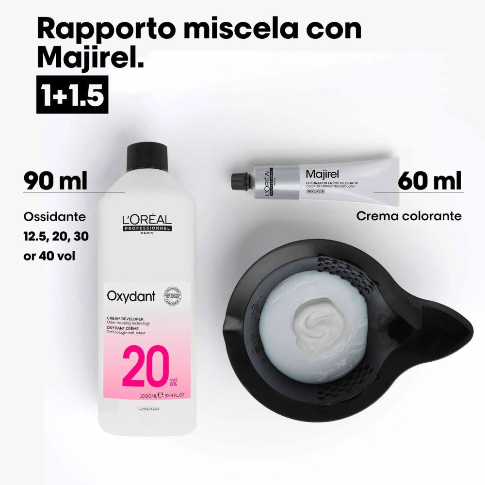 Per ogni applicazione, miscelare la crema colorante Majirel e l'ossidante (miscela 1+1,5).