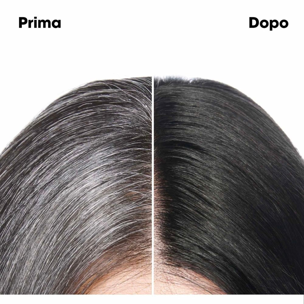 Colore uniforme e ricco dalle radici alle punte. Fornisce un colore fedele al tono, di lunga durata, con fino al 100% di copertura dei capelli bianchi.