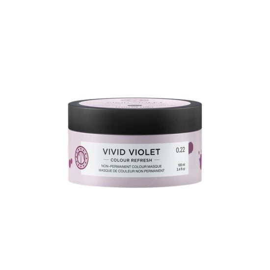 Una delicata maschera per capelli con pigmenti colorati non permanenti. Usando Colour Refresh puoi facilmente intensificare il tuo colore o cambiarlo. Il colore svanisce in maniera progressiva e dura circa 4-10 lavaggi. Il risultato dipende dalla qualità del capello e la maschera risulterà più efficace su capelli trattati o porosi. Le tonalità chiare e medio-chiare sono perfette sui capelli biondi o castano chiaro. Ricorda che una maschera pigmentata non può schiarire il colore. Vivid Violet è l’esclusiva maschera pigmentata di Maria Nila che dona intense sfumature viola ai capelli.