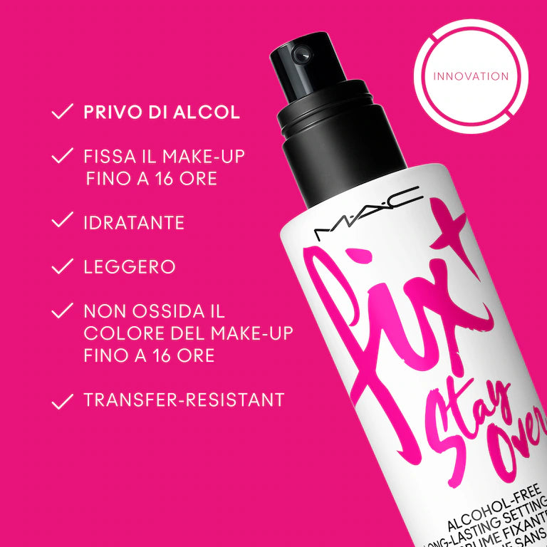 Fai in modo che il tuo make-up duri a lungo, senza alcol! Fissa il tuo look con il nostro rivoluzionario spray-fissante senza alcol. Fix+ Stay Over fa gli straordinari per fissare il trucco per 16 ore, mentre gli antiossidanti proteggono dall'inquinamento ambientale e dalla luce blu. Questa innovativa formula idratante utilizza microscopiche particelle filmogene per fissare il trucco con una tenuta impalpabile e senza alcol. Ora con un erogatore-di nebulizzazione fine!