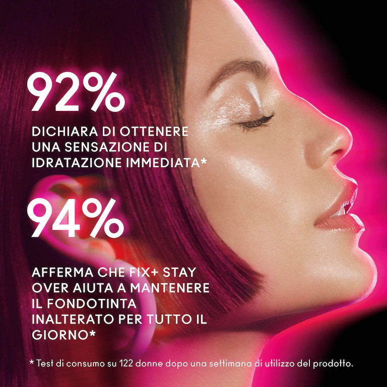 Il 94% afferma che Fix+ Stay Over aiuta il fondotinta a rimanere fedele al colore per tutto il giorno*