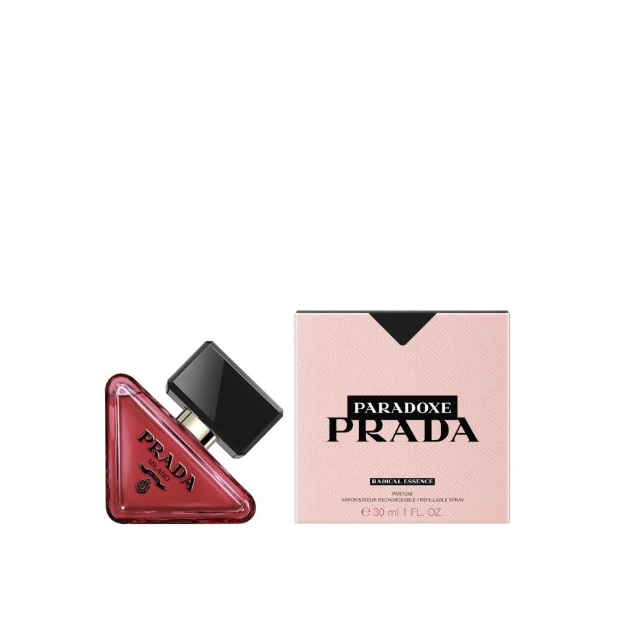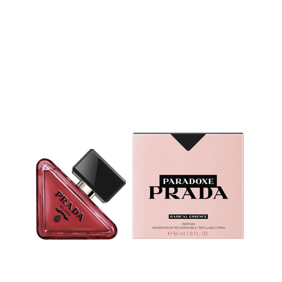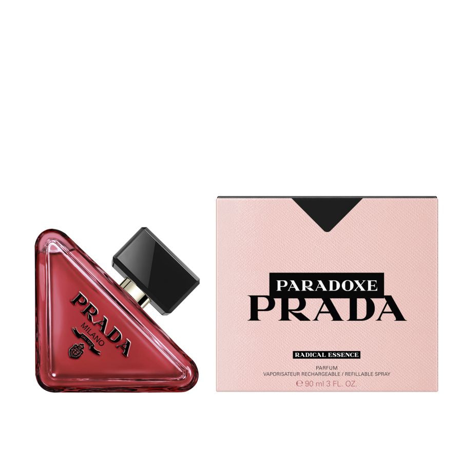 Paradoxe Radical Essence, la nuova fragranza femminile di Prada. Ripensa i profumi gourmand con il Paradoxe più avvincente: note gourmand inaspettate in un sofisticato Parfum. La firma floreale ambrata sensoriale di Paradoxe si reinventa con una nuova dimensione gourmand. Per una nuova prospettiva sui profumi gourmand, i maestri profumieri Nadège Le Garlantezec, Shyamala Maisondieu e Antoine Maisondieu hanno scelto e reinventato ingredienti iconici, rivelando nuove sensazioni olfattive. La firma floreale di Paradoxe è reinterpretata come un dolce fiore commestibile, grazie all'Olio di Neroli e all'Assoluta di Cuore di Fiore d'Arancio. Il cuore svela un inaspettato Accordo di Pistacchio Salato, con note tostate e salate. Alla base, un cremoso Accordo di Sandalo dona sofisticatezza, per una scia sensuale e moderna. Il flacone minimalista, ispirato al triangolo Prada, è reinventato con una laccatura rosa intenso, riflettendo l'intensità di Radical Essence. L'astuccio richiama la trama Saffiano. La firma rosa e il logo Prada nero si intrecciano, con le etichette Paradoxe in nero. Le bottiglie sono progettate per limitare peso e uso di vetro, gli imballaggi sono certificati FSC MIX. La gamma è ricaricabile, per ridurre il materiale di imballaggio.