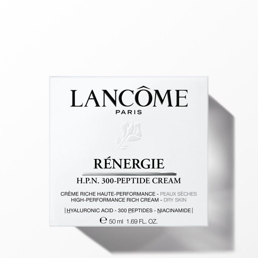 Per la prima volta, Lancôme unisce acido ialuronico, oltre 300 peptidi e il potere della niacinamide in un`unica crema alta performance. La concentrazione più elevata mai realizzata da Lancôme. La formula ad alta performance di H.P.N. 300-PEPTIDE CREAM è stata appositamente ottimizzata per fornire una maggiore idratazione per i tipi di pelle secca, preservando al contempo l`efficacia anti-età. La nuova formula è arricchita con il 9,8% di squalano per donare idratazione e morbidezza alla pelle. Con una sola applicazione, la pelle viene reidratata e acquista compattezza.