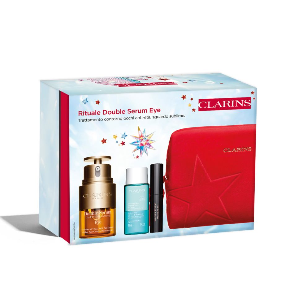 Il cofanetto include l’iconico siero contorno occhi Double Serum Eye, che agisce sui segni visibili del tempo sulla zona delicata e fragile del contorno occhi, lo Struccante Occhi Express per eliminare all’istante ogni traccia di make-up occhi e il Wonder Perfect Mascara 4D, che dona volume, lunghezza, curvatura e definizione alle ciglia, per uno sguardo perfetto in 4 dimensioni. Una grande trousse custodisce tutti questi trattamenti.