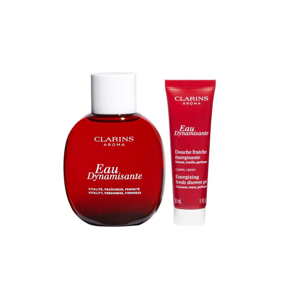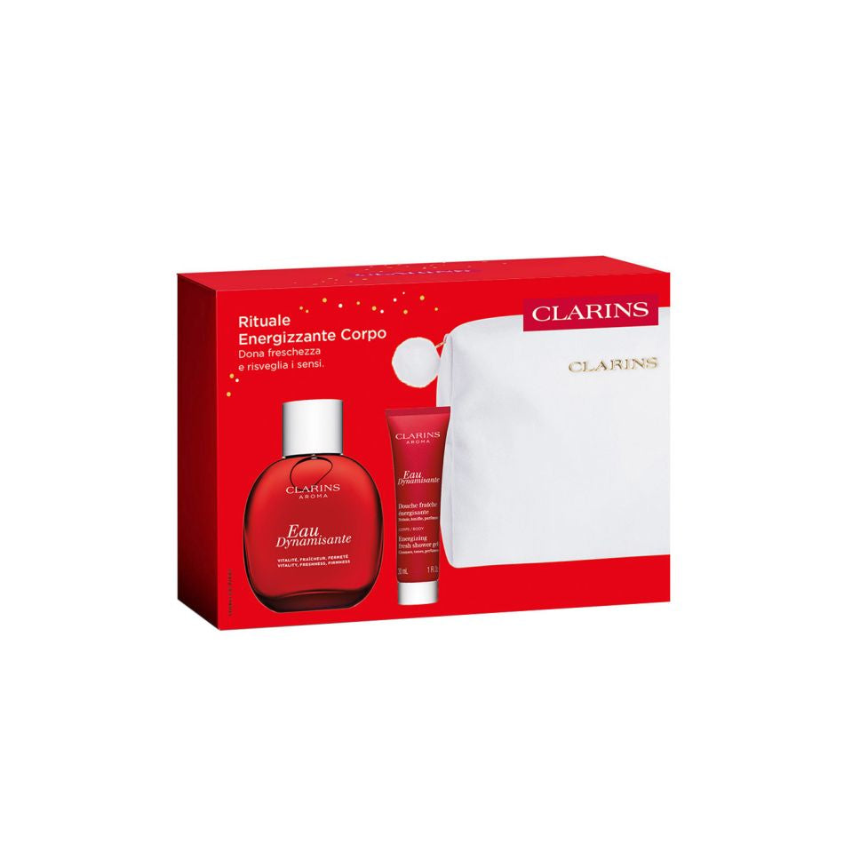 EAU DYNAMISANTE: La prima, iconica Acqua di Trattamento Clarins! Composta al 95% da ingredienti di origine naturale, profuma, energizza e tonifica il corpo e la mente. Perfetta per iniziare bene la giornata o far fronte alla stanchezza momentanea. Dapprima, le note di testa di arancio dolce e amaro, mandarino e petitgrain rivelano tutta la propria freschezza. Seguono poi note di cuore di spigo, eucalipto, dragoncello e noce moscata, abbinate a effluvi di patchouli, che conferiscono all’Eau Dynamisante il suo carattere rigenerante. La pelle ritrova tutta la sua energia e compattezza grazie all’azione stimolante dell’estratto di ginseng rosso bio, abbinato al potere tonificante dell’estratto di timo limone bio. L’iconico flacone rosso è ricaricabile.