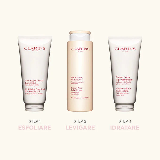 Tutta l’esperienza di un siero viso Clarins in un trattamento corpo.