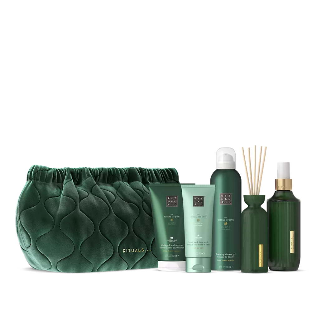 Dona un momento di relax con la trousse da bagno di The Ritual of Jing, con tanti prodotti calmanti e rilassanti per il corpo e per la casa.