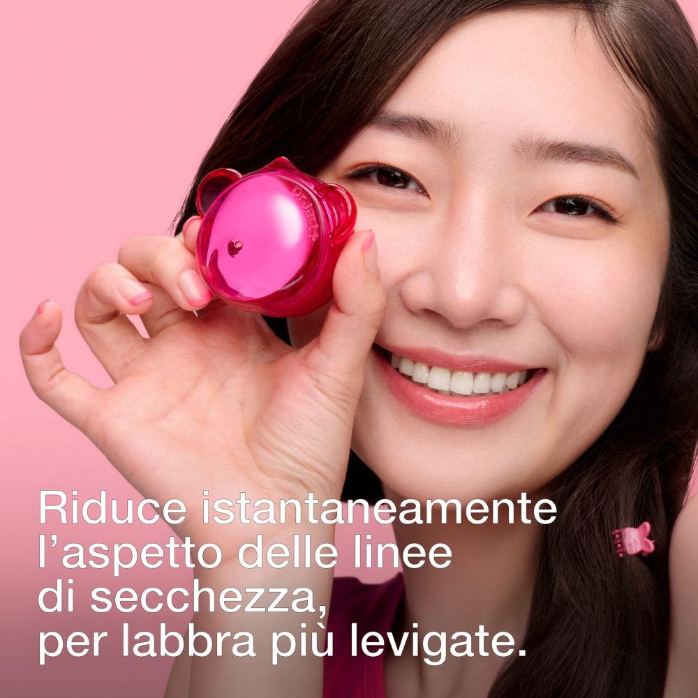La sua texture jelly, ideale per labbra secche, dona una brillantezza rosa naturale e una delicata fragranza fruttata al bubble gum. Rimpolpa immediatamente le labbra e riduce la visibilità delle linee sottili da secchezza, per labbra dall’aspetto più liscio e sano.