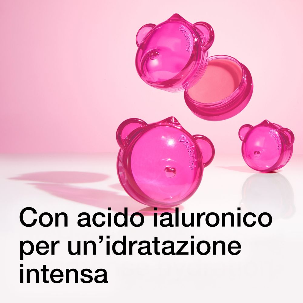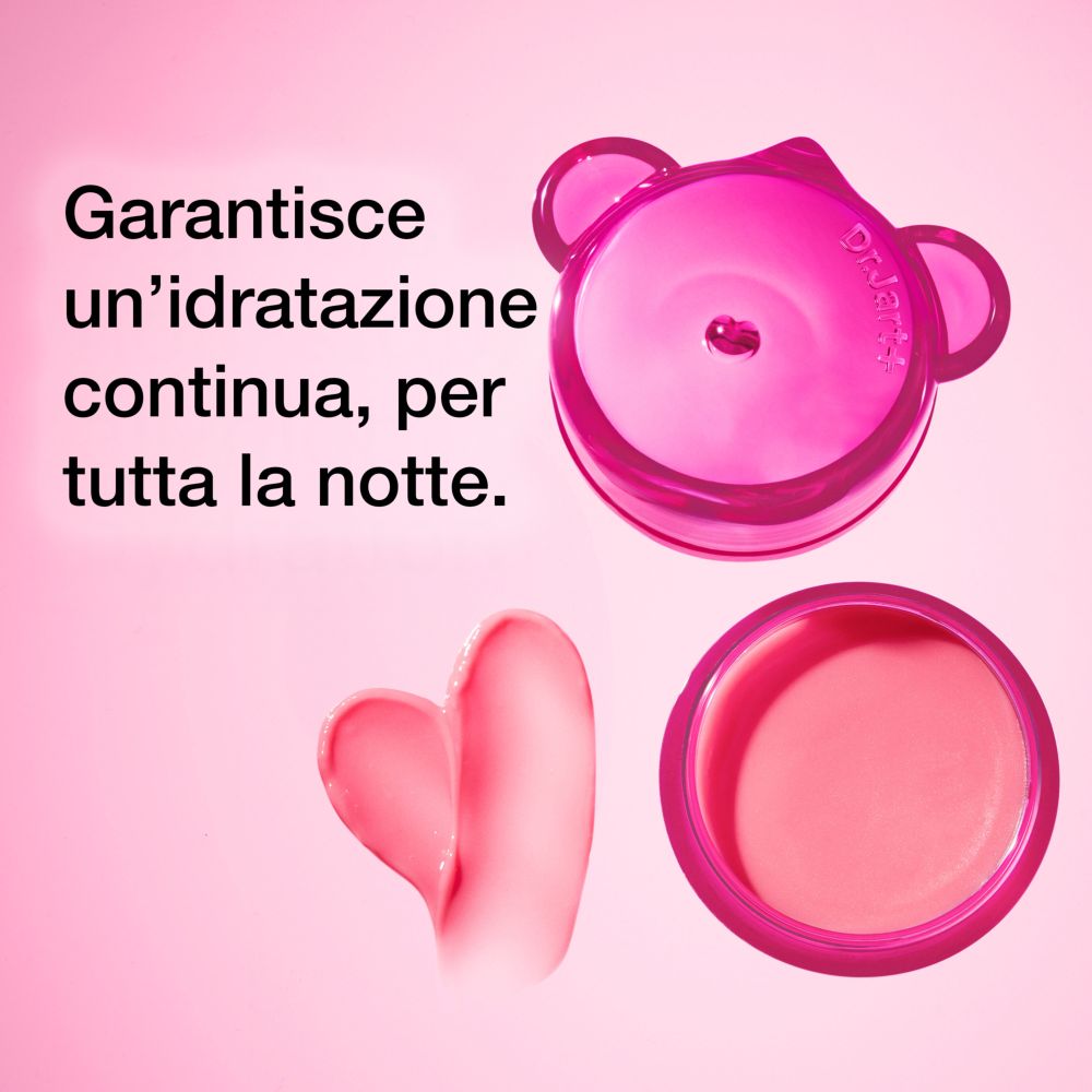 La lip mask più amata di Dr.Jart+ per labbra secche ora arriva in una delicata tonalità rosa trasparente, con una profumazione fruttata al bubble gum.
