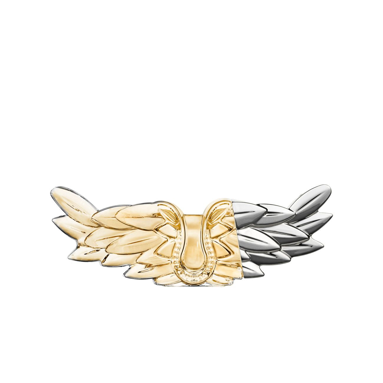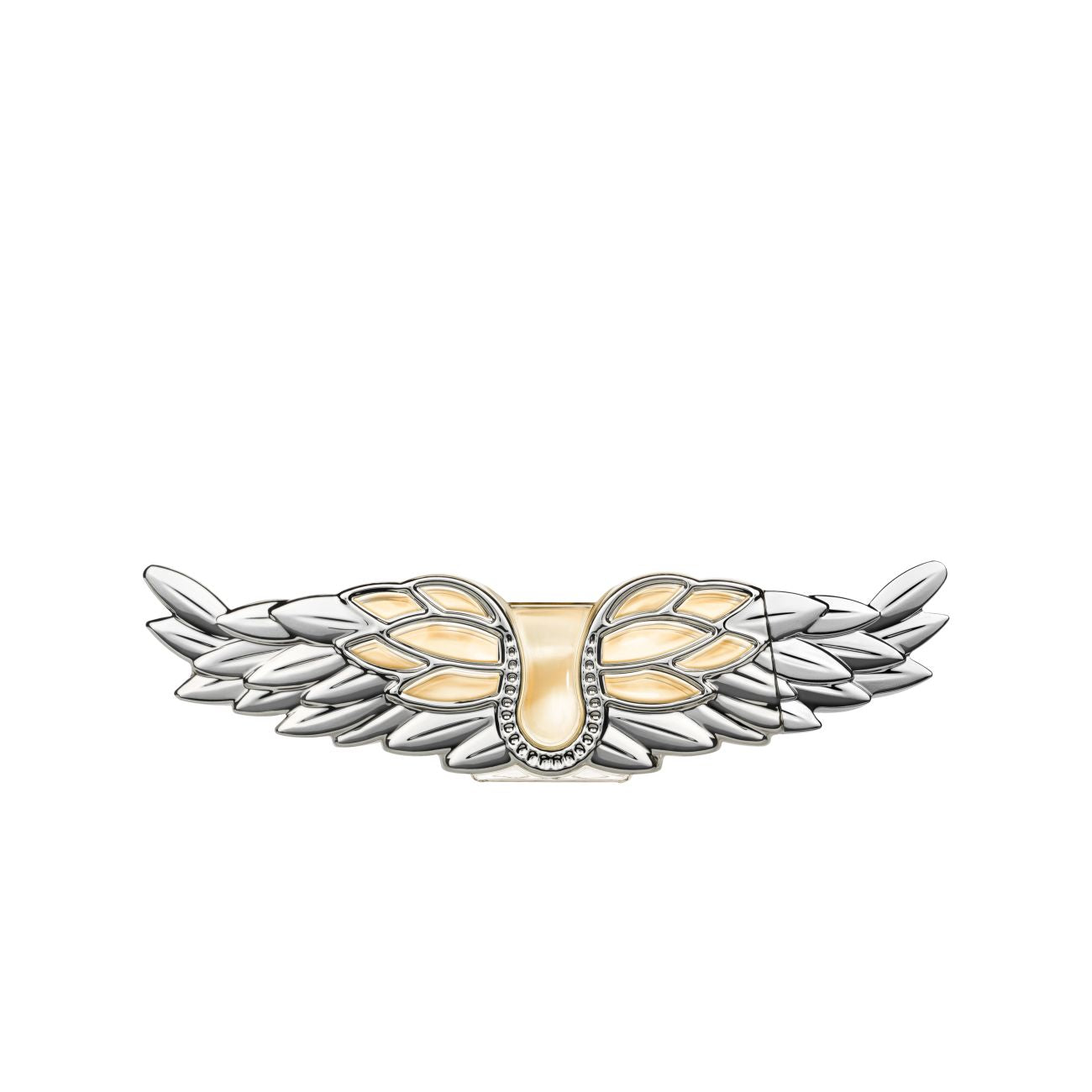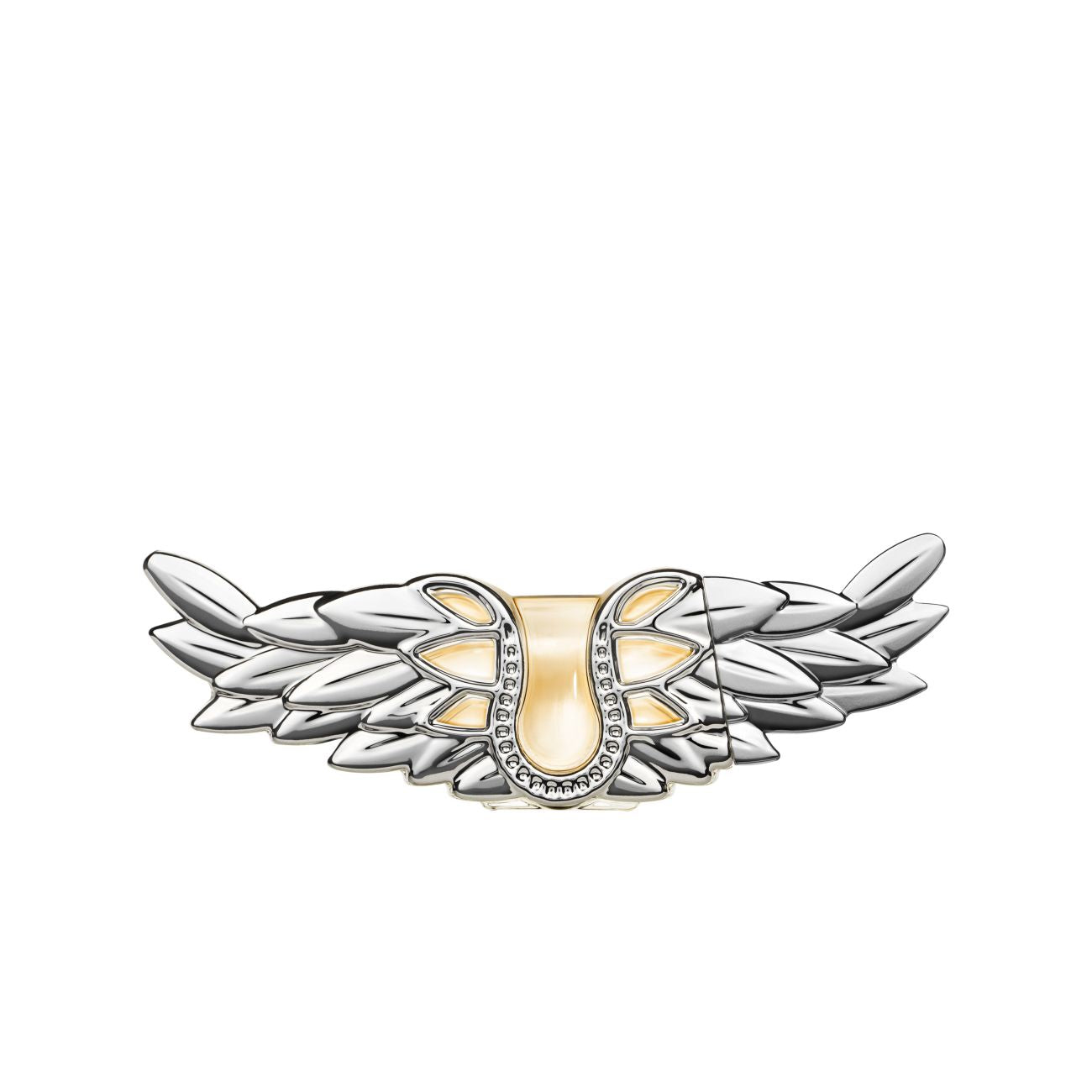 Ispirandosi all’iconico logo di Zadig&Voltaire, il flacone a forma di ali rappresenta la libertà. Tecnicamente complesso e audacemente trasgressivo, sfida tutti i codici della profumeria tradizionale. Un tocco d’argento metallizzato crea una finitura preziosa, dando vita a un oggetto che racchiude in sé un accessorio di moda e un talismano di libertà unico nel suo genere. L’erogatore può essere svitato per ricaricare la fragranza.